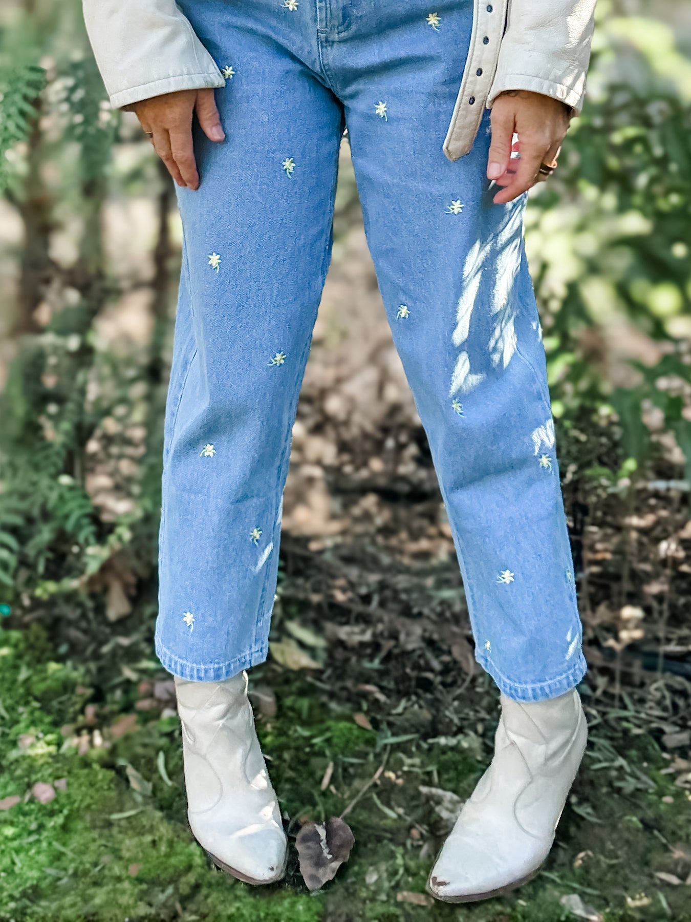 Why we LOVE it: These jeans have an updated barrel fit, but with a classic light wash that has an extra touch of whimsy in the embroidered daisy pattern that can elevate any simple look. They will become your new favorite go-to denim! Pairs great with sandals, sneakers or boots and a great transition into Spring!