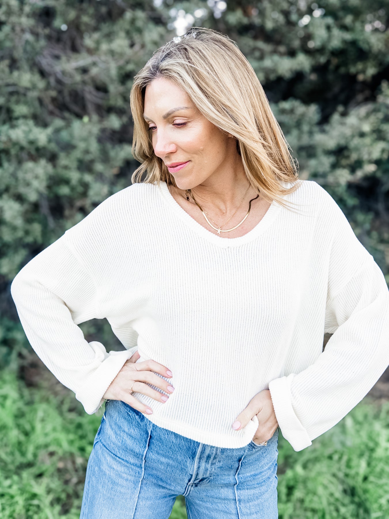 Why we LOVE it: Crowd fav! We love the effortless energy of this easy, casual, super soft piece. Pairs elegantly with all shades of denim for a look that feels elevated, while also feeling like you never stepped out of your pjs. The creamy white adds sophistication and style with ease and comfort.