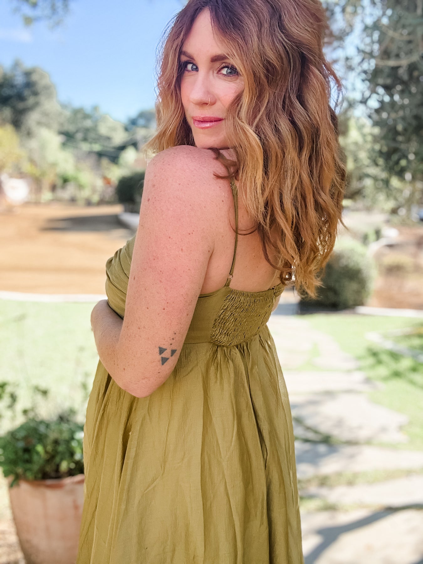 Size Tip: Runs true to size with lots of room through the hips and waist, and a smocked back for easy sizing and additional stretch in the bust.