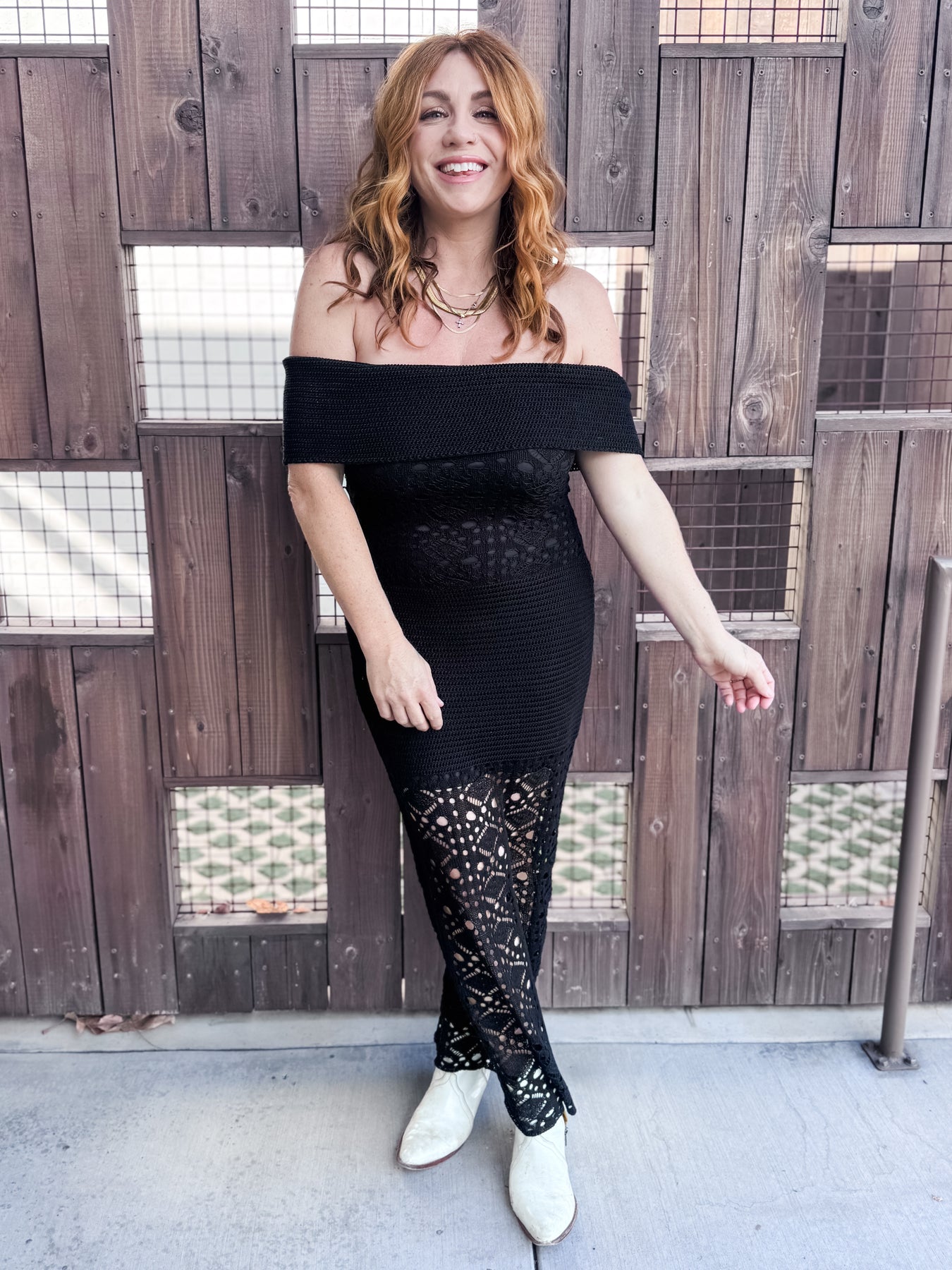 Why we LOVE it: Style this maxi with your favorite statement necklace and sandals for the perfect look. Introducing the Obsidian Daydream Dress-a charming piece with an off the shoulder foldover neckline, flattering fitted waist, and delicate sophisticated look. Perfect for nights out and resortside hangs. A textured update to a staple LBD.