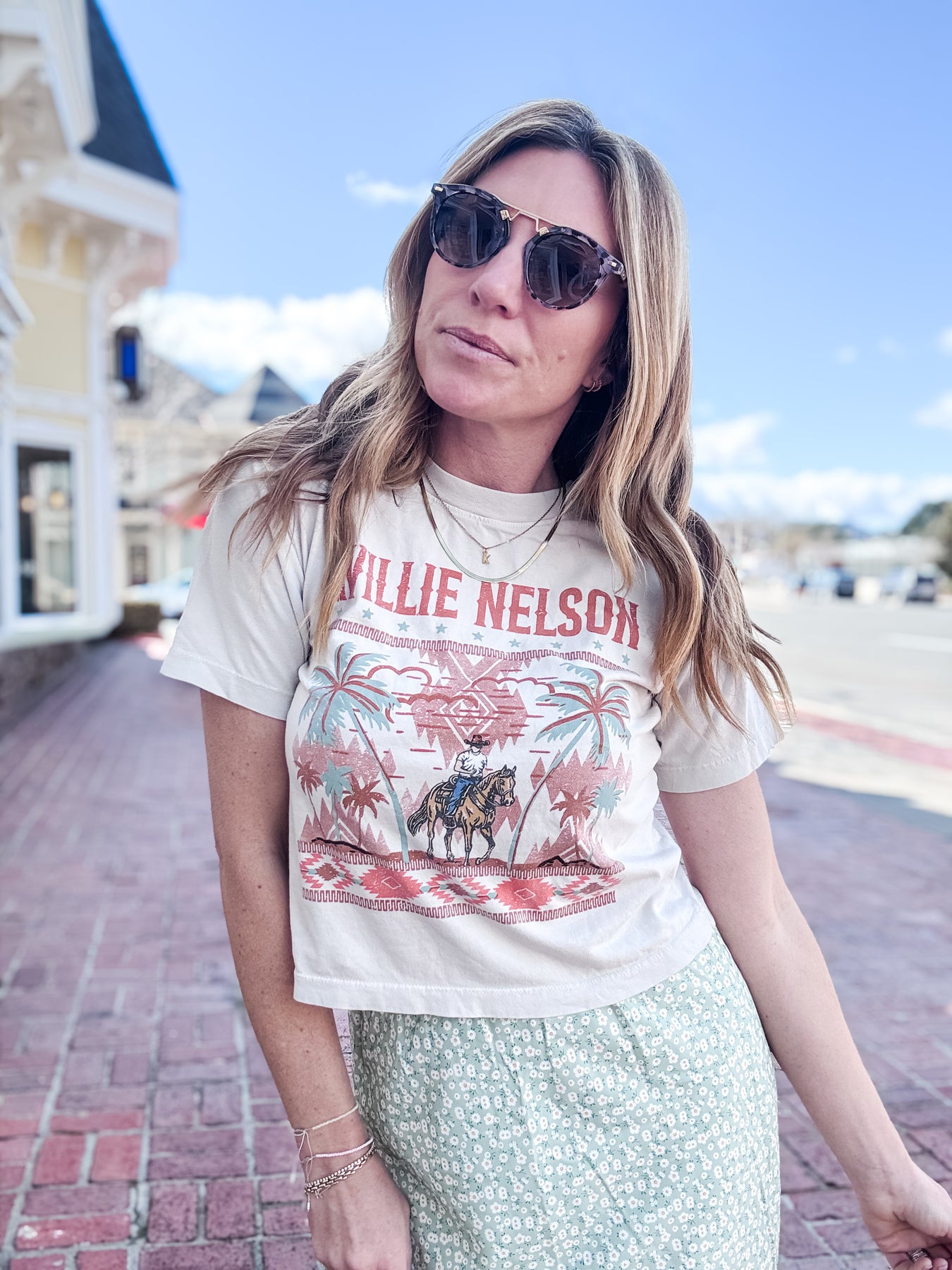 Why we LOVE it: This Willie Nelson tee is there perfect mix of country and cool. In an easy, everyday silhouette that can be worn casual with cutoffs or a favorite pair of denim. This cropped crew neck tee is in a muted color palette that making it easy to wear with anything.