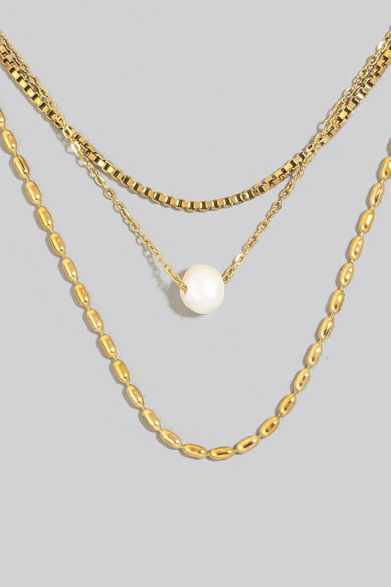 A layered necklace with all the charm! Featuring two textured chains and a pearl charm pendant. A layered look we love for everyday wear.