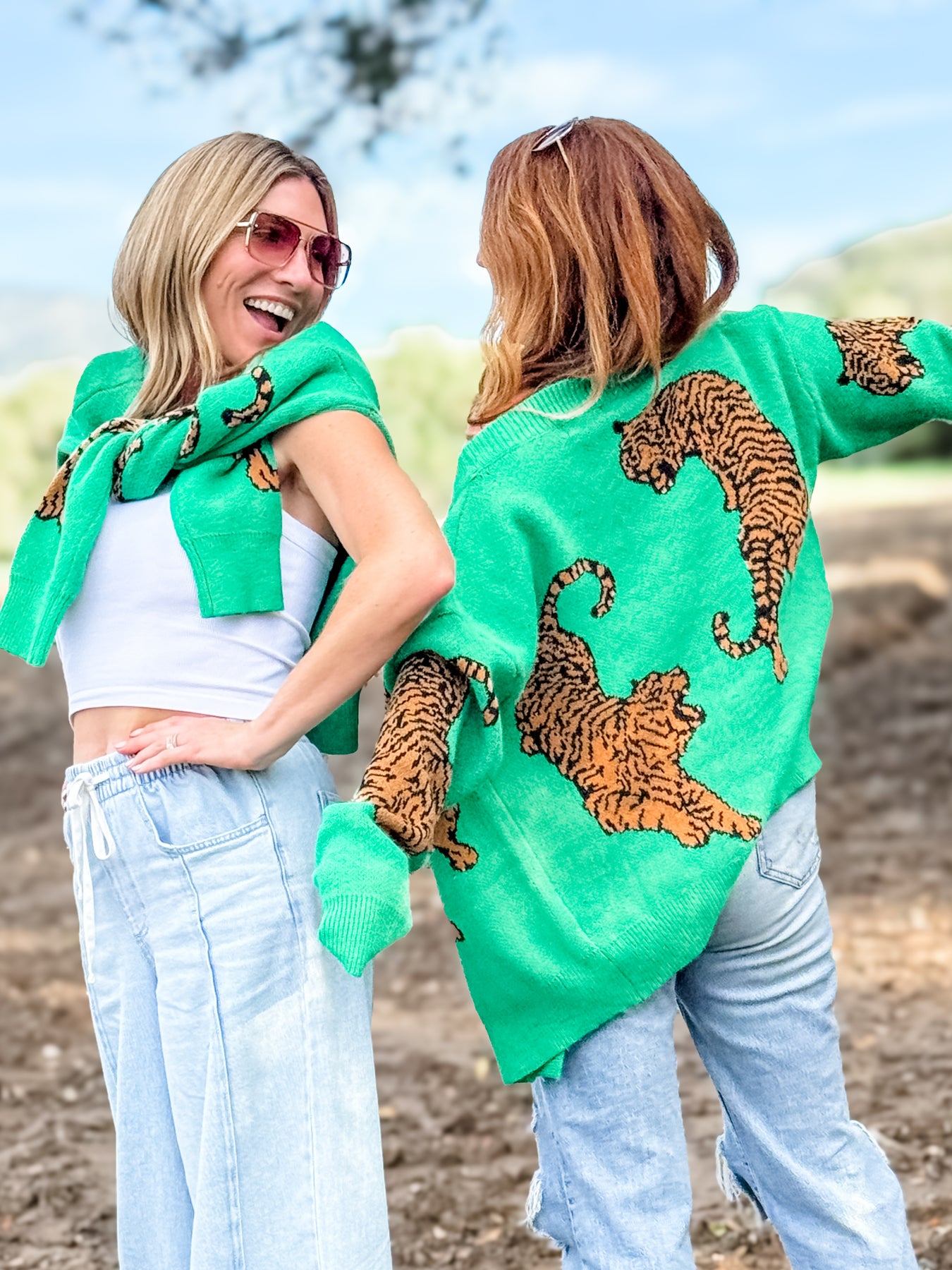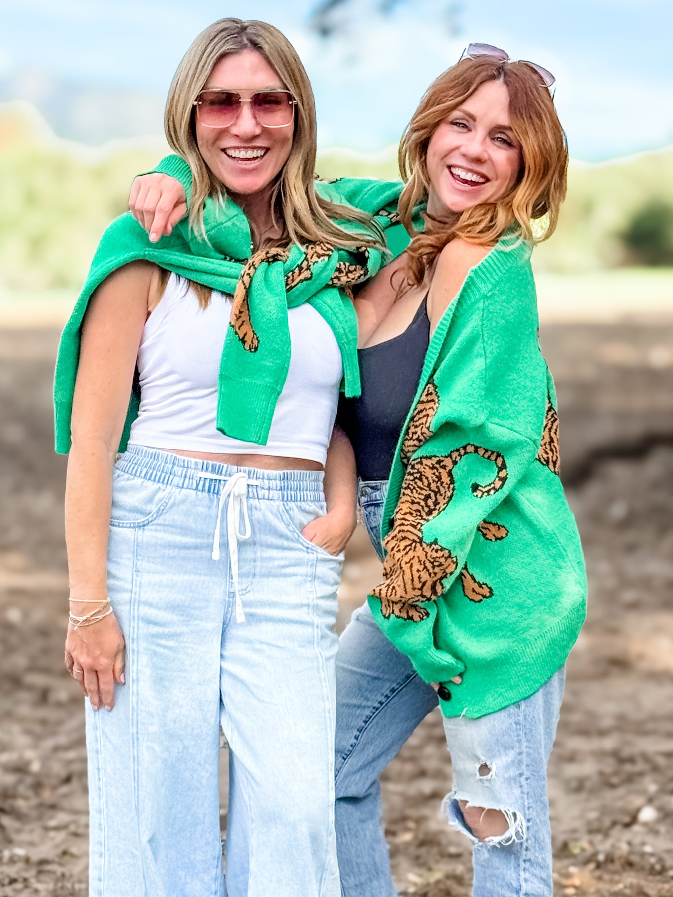 Why we LOVE it: The perfect cropped cardigan! This button up cardigan features cheetahs throughout the green that adds a great pop of dimension. A fun styling piece that we cannot wait to wear!