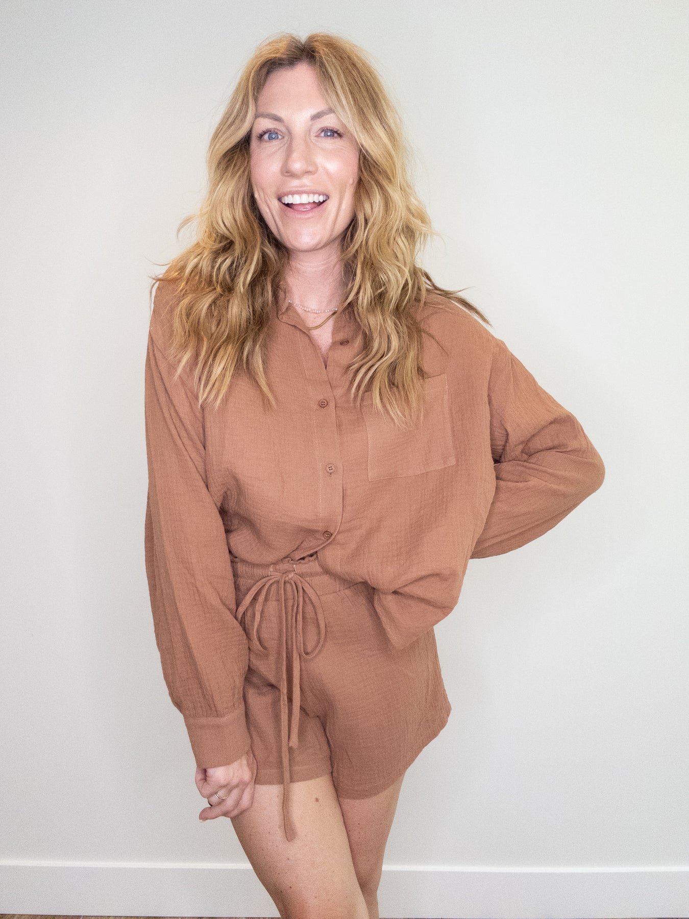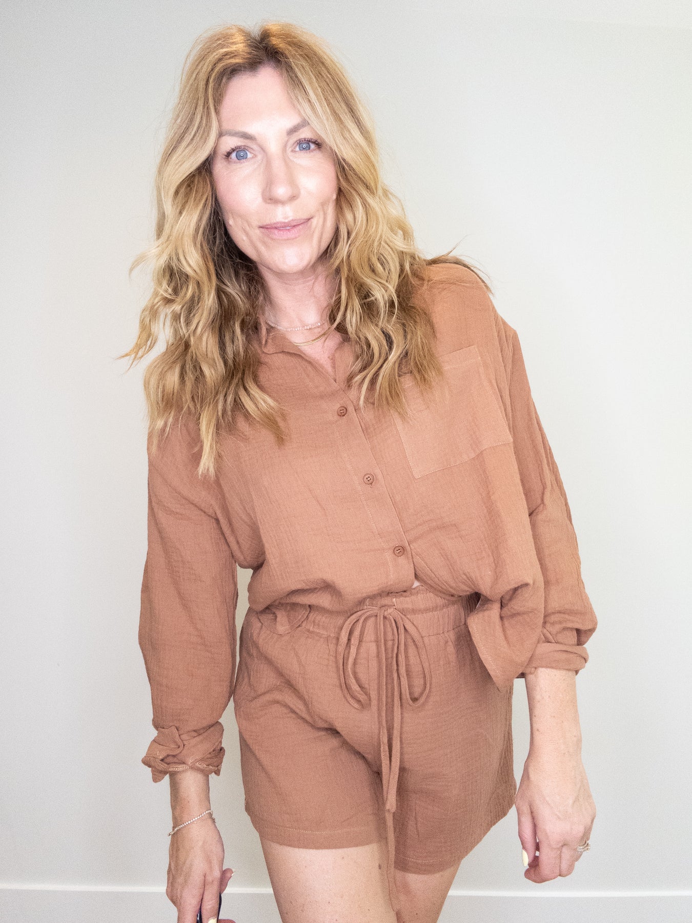The Catch The Breeze Set is a breezy pair that we love for its effortless versatility. Featuring a relaxed button down top, paired with matching drawstring shorts that have an elastic waistband (great for easy sizing and max comfort). Both pieces are crafted from a soft, textured, cotton gauze that you'll love to live in. Love that this can be worn as a set or as separates.