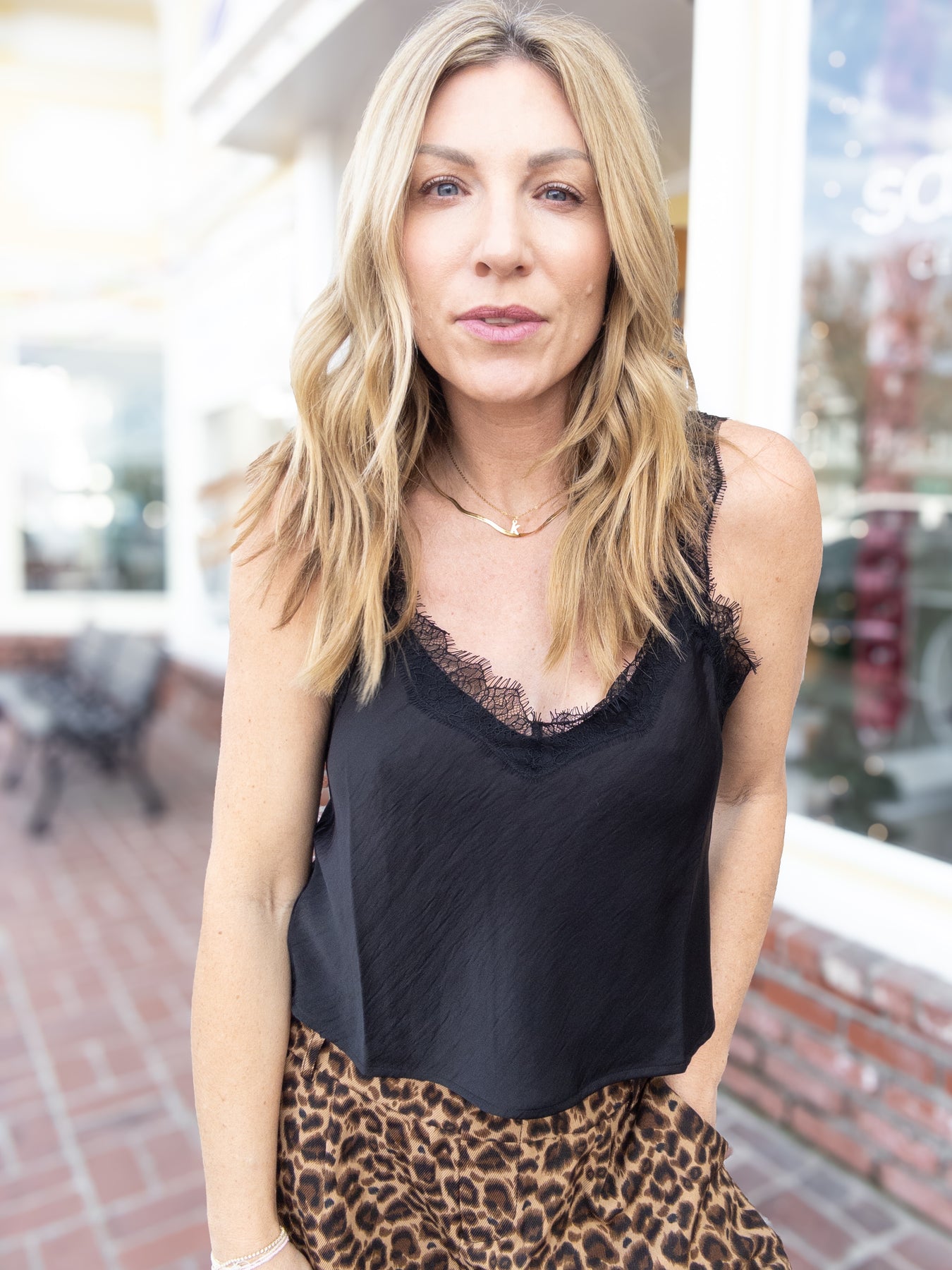 A silky cami with lace accents that feel fresh, feminine, and timeless. Intricate lace meets an easy, body-hugging fit for a look that feels classic yet new. Finished with light shirring and a fluttery hem, it’s a style made for days that call for comfort and a more elevated touch. A timeless staple that will dress up jeans or layer under a blazer. A piece to reach for time and again.