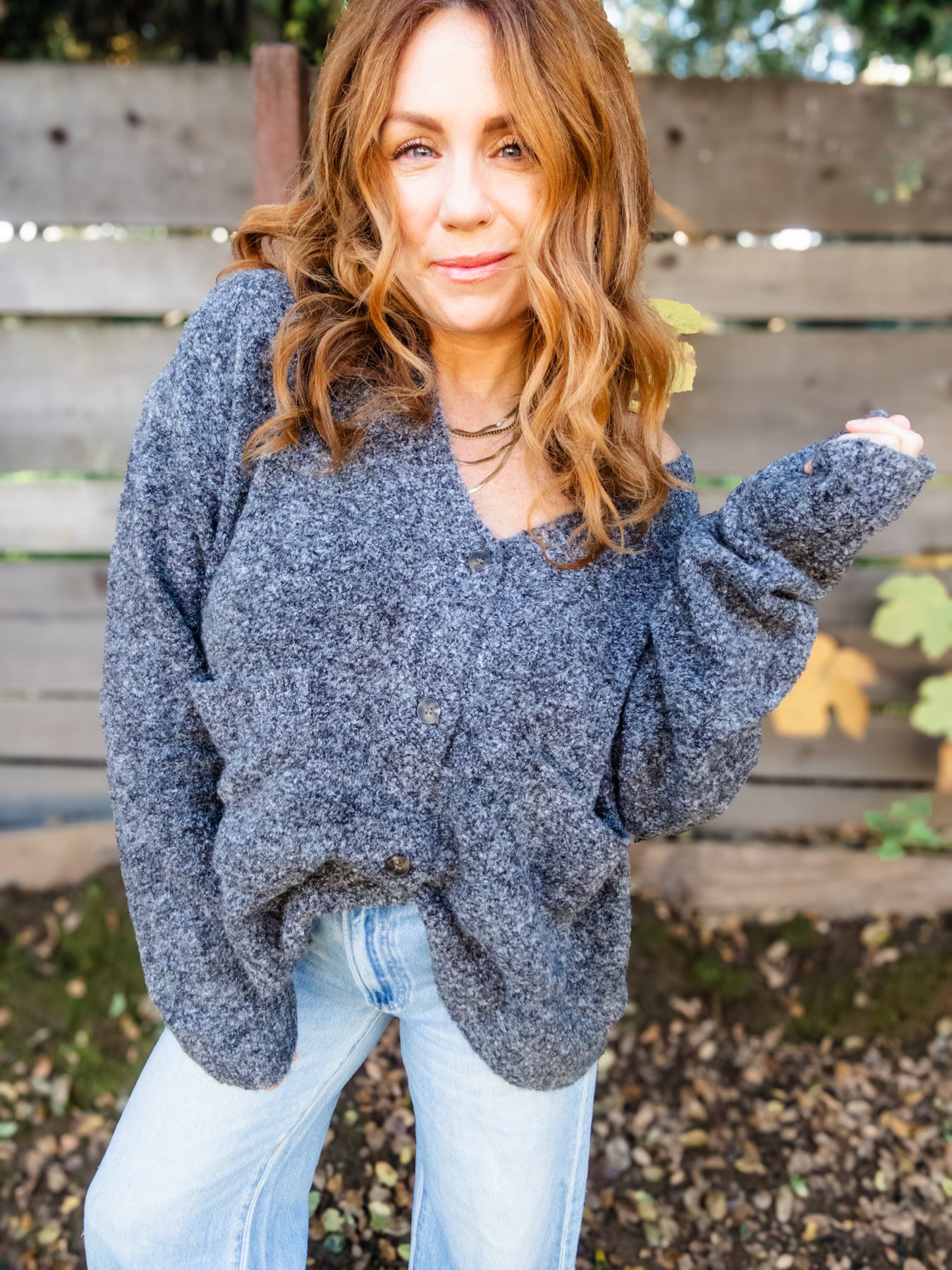 The Scottie button Up Cardigan is a deliciously oversized button front cardigan in a timeless heather grey. Chic and effortless, this stunning style makes a great gift for you or any gal on your list!