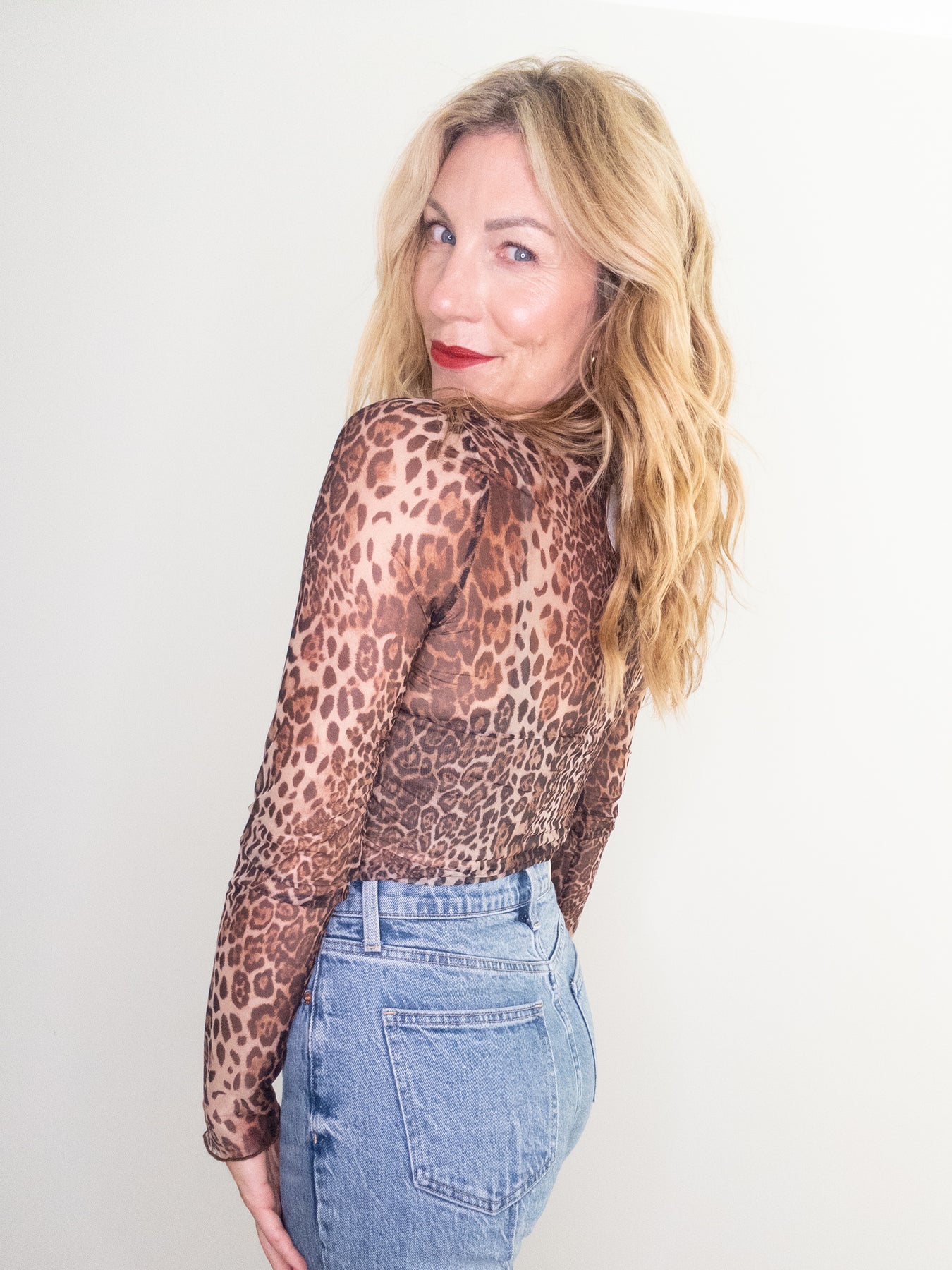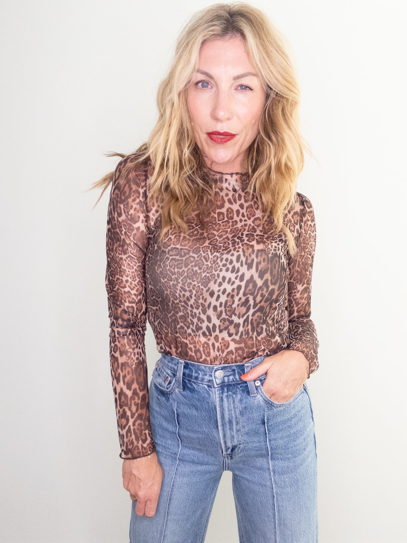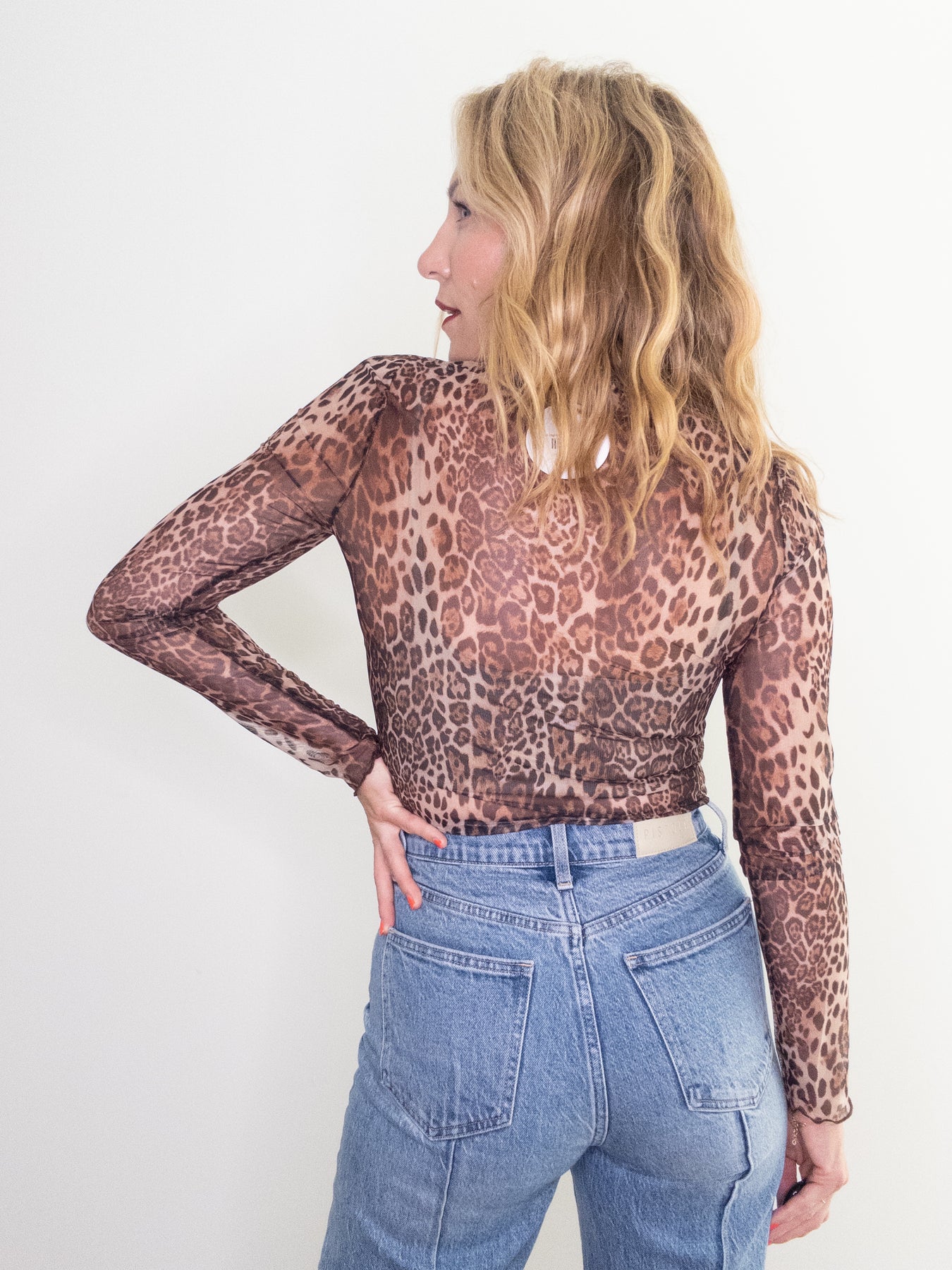 The Wild Night Long Sleeve is fresh in store and won't last long! This leopard print mesh top is a spicy number perfect for your night out. Featuring high mock neck and exposed seams, this top is finished with slight lettuce trim throughout the hemlines. A loose straight silhouette that will move with you. A must have layer, whether underneath your favorite cardigan, band tee or over a cami.