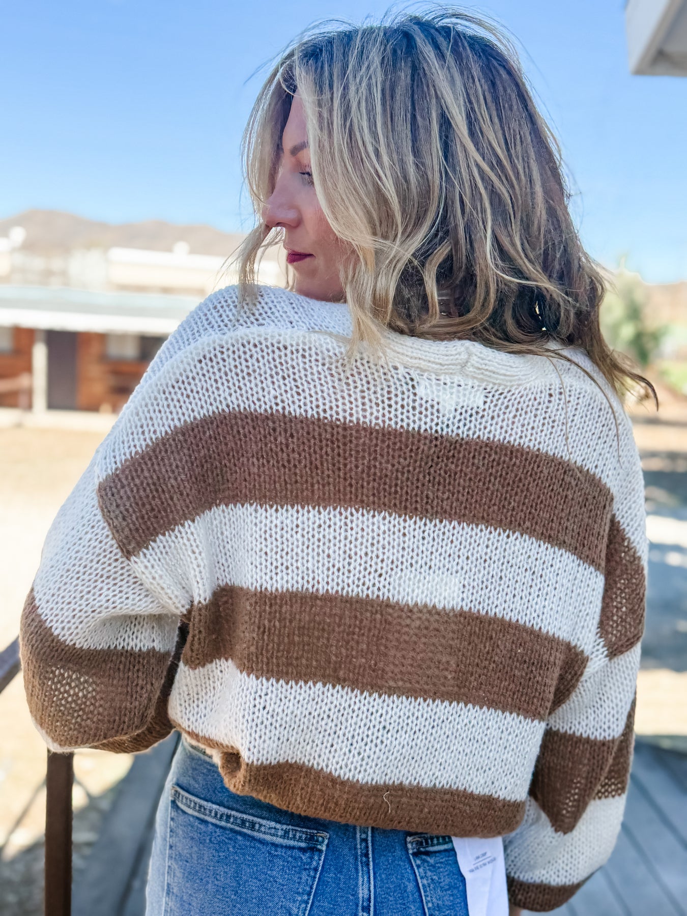 A super sweet cardigan with contrast striped detailing. This front tie cardi can be worn open or closed. With an ultra lightweight fit and touchably soft feel, it's finished with an open knit style breathable style.