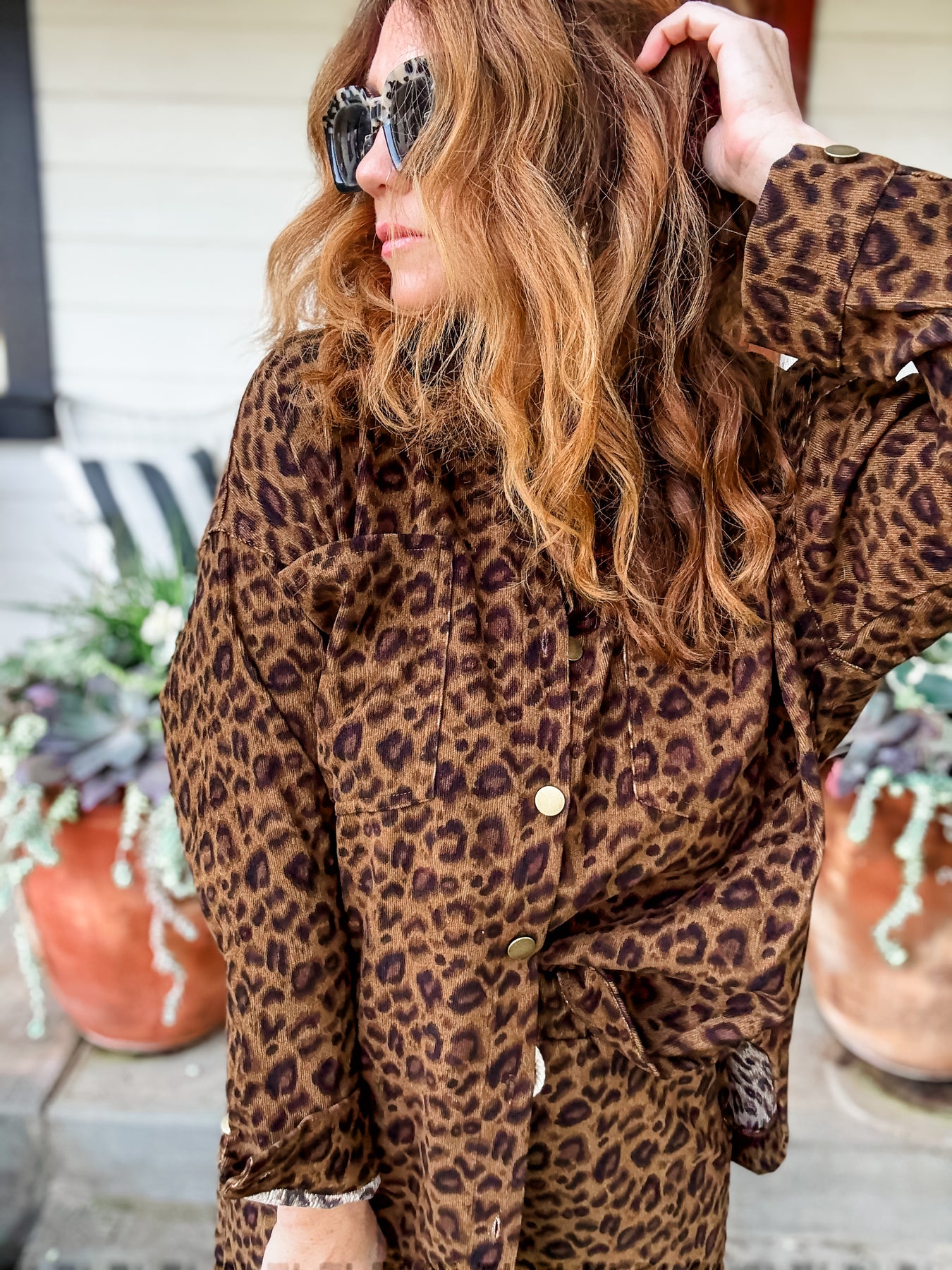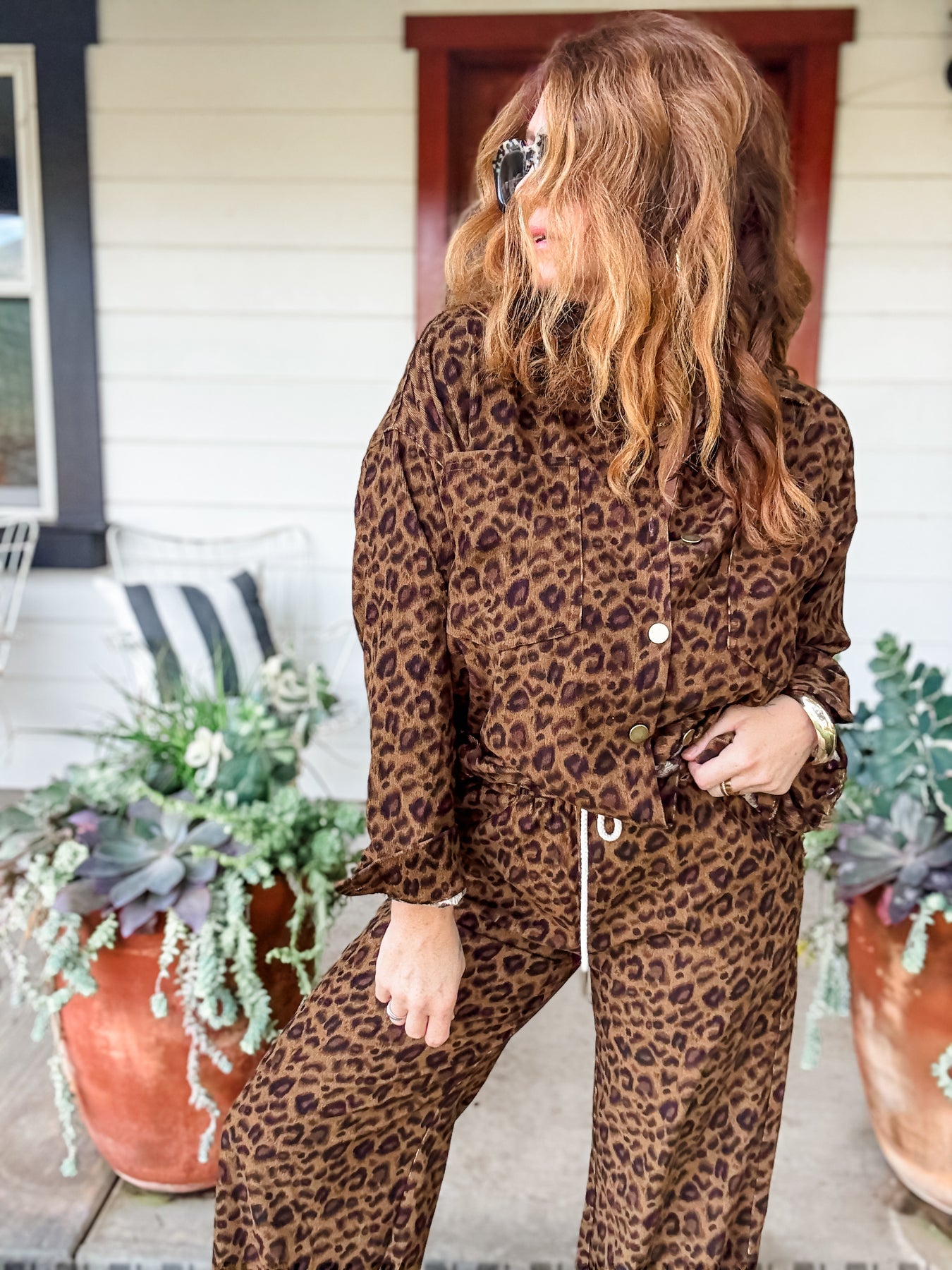 Why we LOVE it: Airport fit incoming. We are so excited to bring you this fabulous set that'll be a knockout worn together or separately! chic and casual, the leopard print is a powerhouse that steals the show on this effortlessly casual combo. So comfy. So cool.